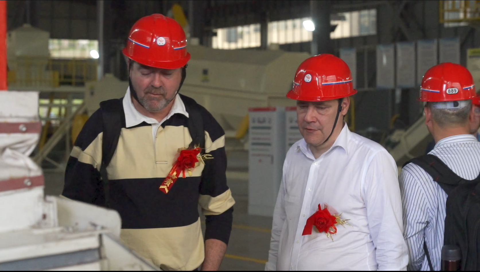 代表團到車間參觀交流我司廢鋰電池回收成套設備演示線、原材料、設備產物