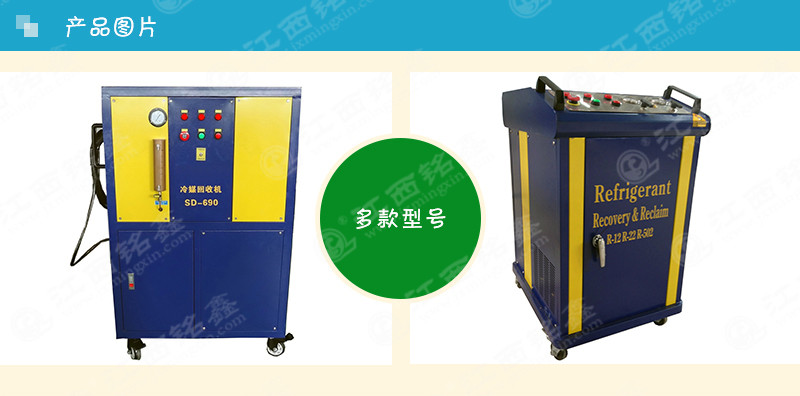 一種回收制冷劑的設(shè)備,用于回收制冷機(jī)械(冰箱、空調(diào)、冷柜等制冷機(jī))中的制冷劑。回收的同時又對制冷劑進(jìn)行一定的處理,如干燥、雜質(zhì)的過濾、油分等,以便于制冷劑的二次利用。