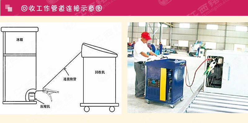 利用壓縮機(jī)將制冷系統(tǒng)的制冷劑回收到設(shè)備內(nèi)過濾、干燥、分離潤滑油,壓縮成氣態(tài)制冷劑,進(jìn)入冷凝器冷卻成液態(tài),儲存到工作罐中,等待重新利用。這樣既保護(hù)了環(huán)境,又增加了經(jīng)濟(jì)效益。
