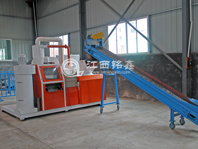 自動(dòng)化一體銅米機(jī)是專業(yè)干式分離廢舊電線電纜的生產(chǎn)線。例如:舊汽車電路線,通訊電纜線,以及剝線機(jī)不適合加工(各種民用電線)廢舊雜料電線.毛絲細(xì)線等.此機(jī)的特點(diǎn)是大小線不用分類可以同時(shí)破碎分離,結(jié)構(gòu)新型,生產(chǎn)量大,耗電少,分選率高,一次投料,多機(jī)協(xié)作完成。全線由PLC控制,在國(guó)內(nèi)處于領(lǐng)先水平。該機(jī)的開(kāi)發(fā)成功,即解決了焚燒取銅方法中出現(xiàn)的問(wèn)題,又能提高回收銅的質(zhì)量,并可將塑料回收利用,同時(shí)解決環(huán)境的污染。