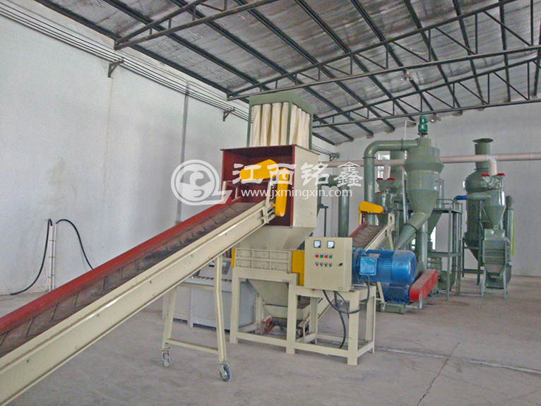 設備采取了干式破碎、粉碎,使廢舊電路板成為金屬和樹脂纖維末混合物,然后通過高壓靜電分離器將金屬與樹脂等非金屬分離的工藝路線。設備優點,噪音小、無需水、無粉塵污染、節約動力,節約人力、絕無廢棄物,金屬及非金屬99%充分回收利用。為防止加工過程中的粉塵污染,設備采用三合一除塵裝置,除塵裝置共有三級除塵:旋風除塵、布袋除塵和空氣凈化器除塵,有效地解決了粉塵污染問題,各項指標均達國家標準。